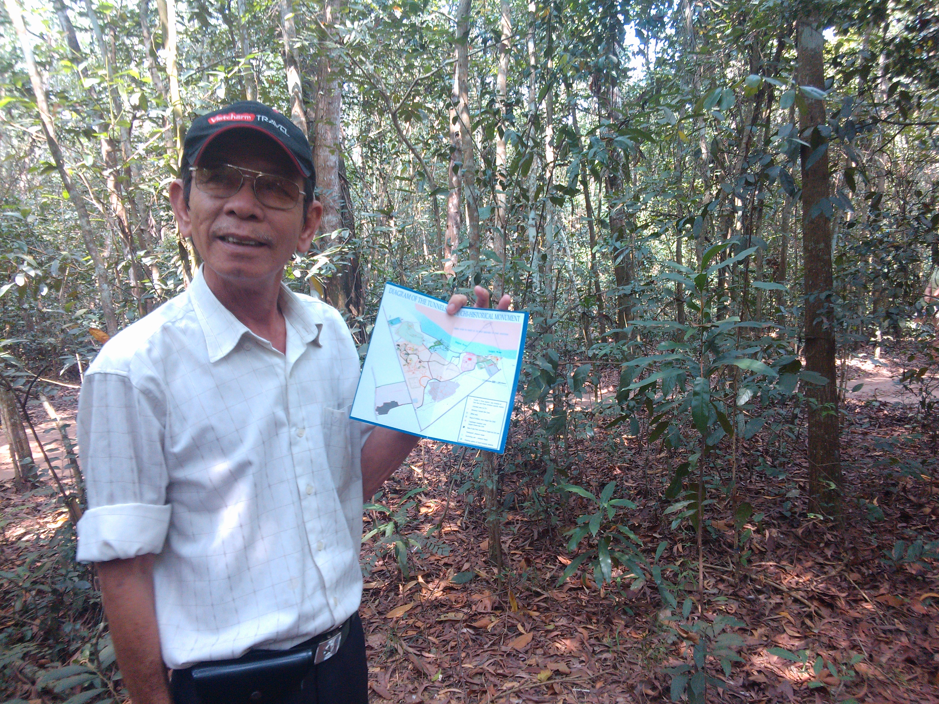 Ich widme den Titel dieses Berichts dem Reiseführer meines gestrigen Ausflugs zu den Viet Cong-Tunneln außerhalb Saigons – denn nicht die Besichtigung, sondern er war die eigentliche Attraktion des Tages. Seine Erklärungen zum Krieg und Ausführungen zur eigenen Biographie begannen um 8:30 morgens im Reisebus und nahmen bis zur Wiederankunft in Saigon nach sechs Stunden kaum ein Ende.